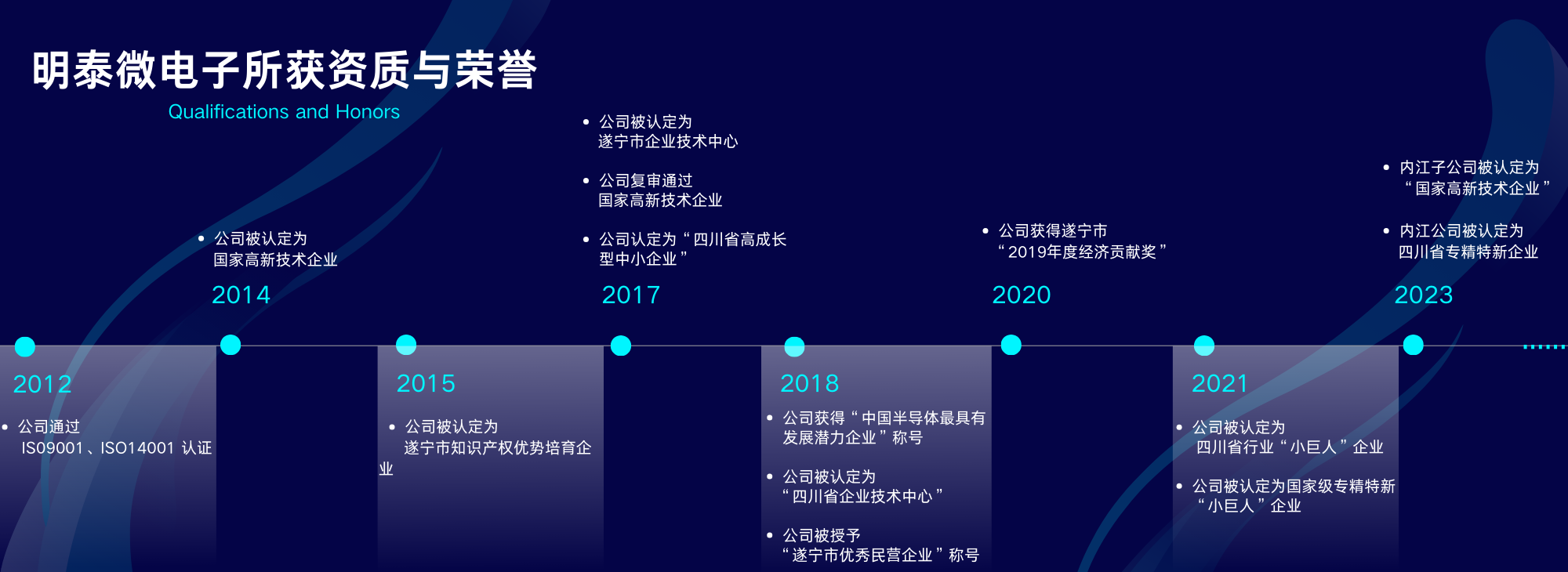 明泰微電子是一家從事集成電路和分立器件封裝與測試業(yè)務的國家高新技術企業(yè),是目前成渝經濟圈規(guī)模最大的第三方獨立封測服務型制造企業(yè)。主營業(yè)務為集成電路和功率器件的封裝、測試和銷售,是西南地區(qū)規(guī)模最大的獨立第三方代工企業(yè)。公司現有的封裝產品主要包括DIP系列、SOP系列、TO系列、SOT系列、QFN/DFN、LQFP、LGA、PDFN、TOLL等,掌握疊層封裝、多芯片封裝等技術。